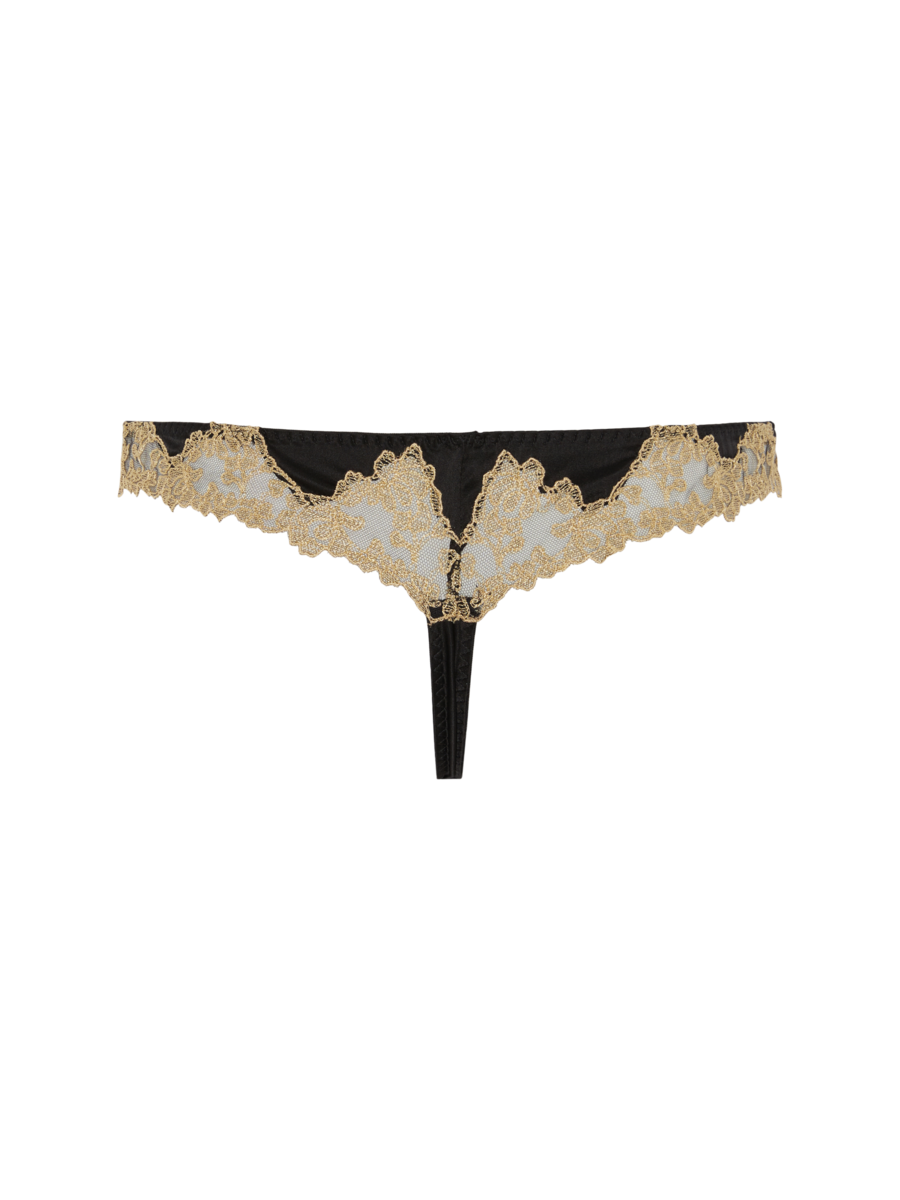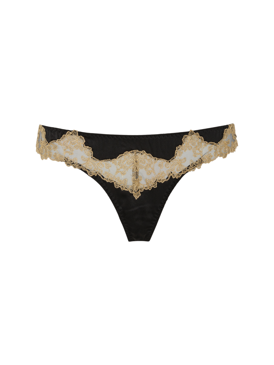 The Reina Skirted Thong is a classically alluring cut, the bespoke black and gold embroidery giving it a fittingly majestic feel.