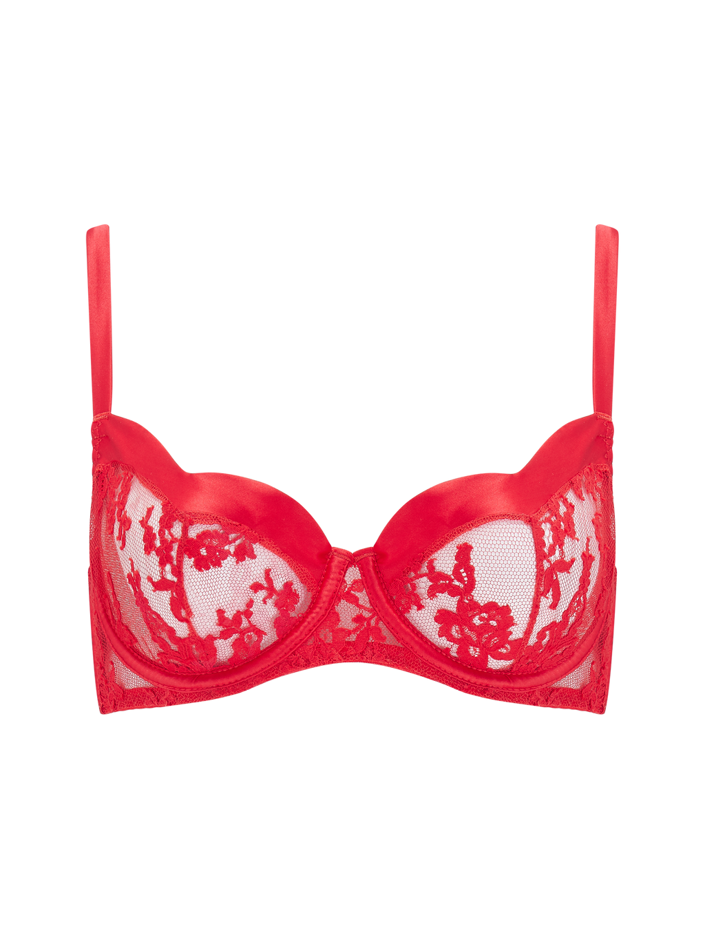 The Marella Balcony Bra is a sight to behold, featuring a blend of indulgent silk and breathtaking French Chantilly Lace.