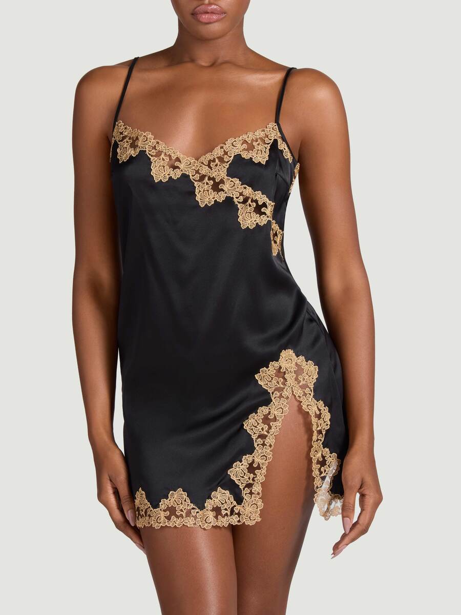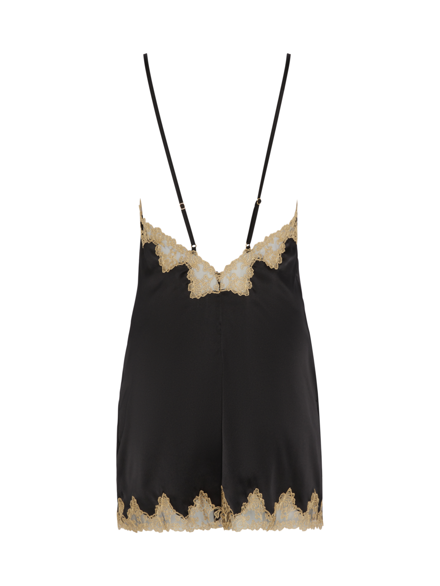 Adjustable silk straps frame a dramatic plunge down the back, sitting so perfectly at the heart of the spine. Simple golden hardware adds a finishing touch of luxurious craftsmanship.